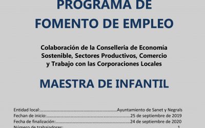 El Ayuntamiento de Sanet y Negrals hace pública la concesión de subvención por parte de la Excma. Diputación Provincial de Alicante, área de Bienestar Social. La Junta de Gobierno de la Excma. Diputación provincial de Alicante, en sesión Ordinaria de 11/9/2019...