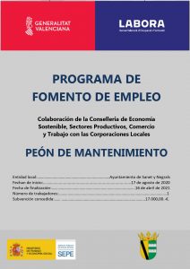 Esta acción promovida por el Ayuntamiento de Sanet y Negrals contó con una subvención de 17.000 euros del LABORA de la Generalitat Valenciana y Fondos S.E.P.E. (Servicio Público de Empleo Estatal) del Ministerio de Empleo. Con esta subvención se ha financiado al 100% esta contratación, por lo que ha tenido un coste “cero” para el Ayuntamiento de Sanet y Negrals.