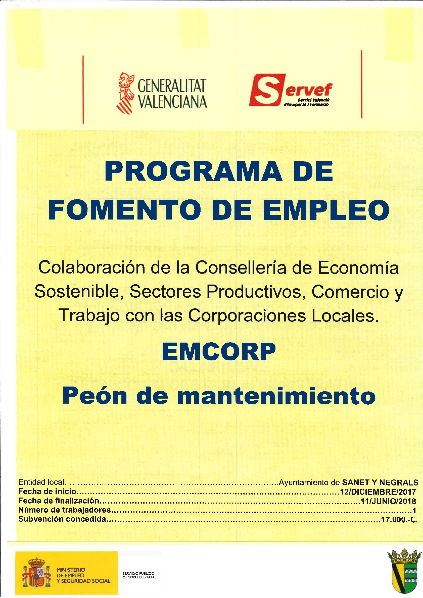El Ayuntamiento ha sido beneficiario de una subvención del Servef basada en la Resolución de 21 de junio de 2.017, del director General del Servicio Valenciano de Empleo y Formación, por la que se convocan par el ejercicio 2017 las subvenciones destinadas a la contratación de personas desempleadas de al menos 30 años de edad, en colaboración con las entidades locales de la Comunitat Valenciana, reguladas en la ORDEN 8/2016, de 7 de julio, de la Consellería de Economía Sostenible, Sectores Productivos, Comercio y Trabajo, que han tenido como objetivo principal la realización de programas públicos de formación y fomento del empleo (Programa de Iniciativa Social en colaboración con las corporaciones locales de la Comunidad Valenciana), impulsados desde el Servicio Valenciano de Empleo-SERVEF).