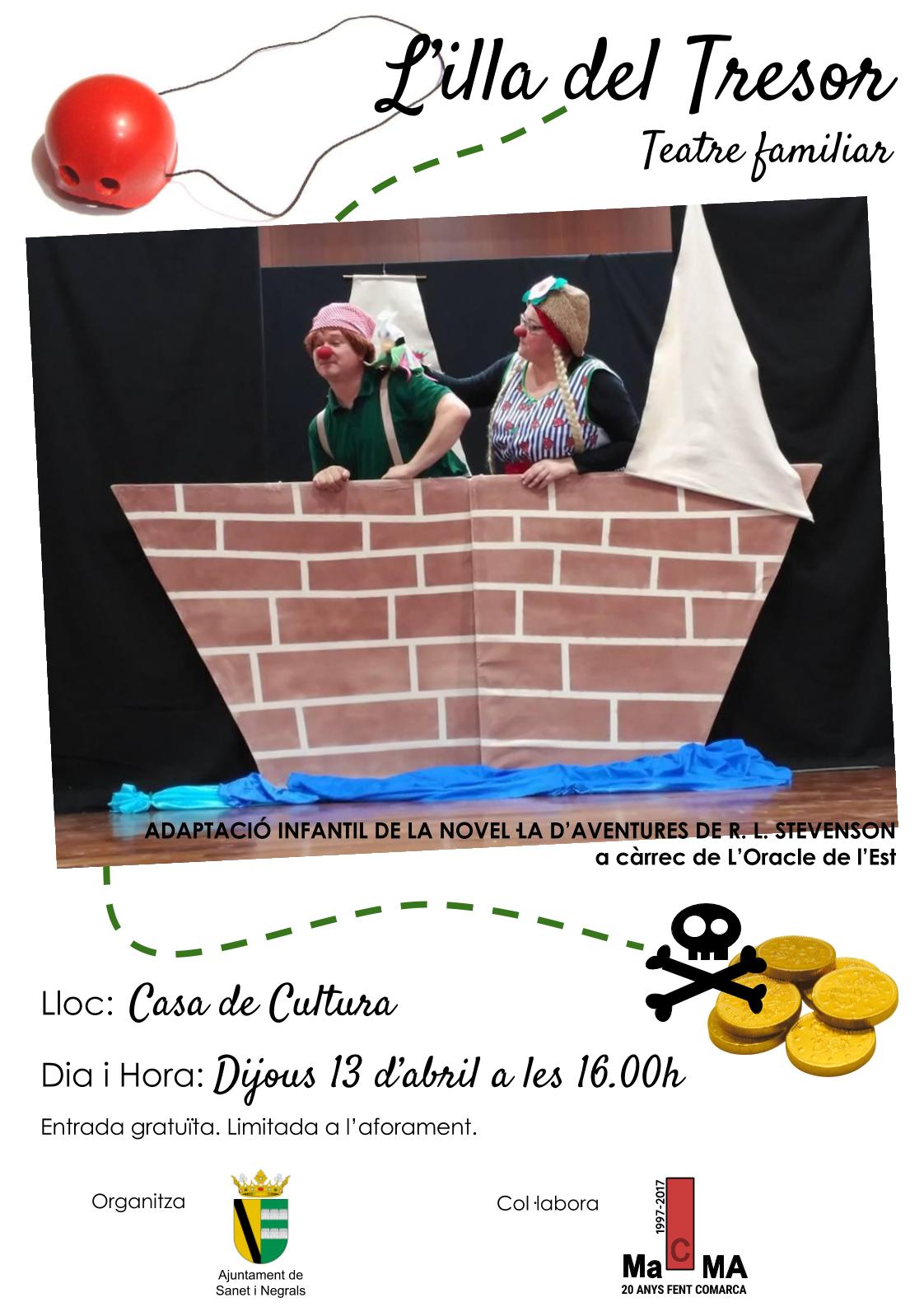 El próximo jueves día 13 de abril, se llevará a cabo la representación de la adaptación infantil de la novela «La isla del Tesoro» de R.L. Stevenson.